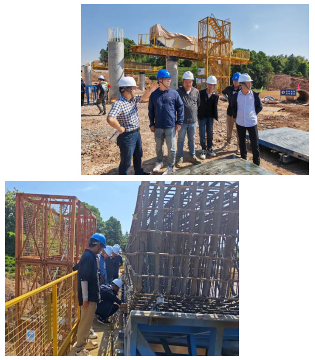 培訓(xùn)人員分別參觀了試驗檢測中心、鋼筋加工場、毛家塢水庫橋施工現(xiàn)場。528龍游項目部負責(zé)人劉春喬在現(xiàn)場對樁基施工、立柱搭建、蓋梁工序等關(guān)鍵技術(shù)點,包括操作工藝、質(zhì)量檢驗、以及周密的安全防范措施,進行了深入淺出的剖析。