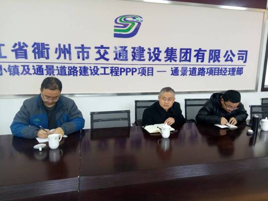 麻新建局長蒞臨花彩小鎮(zhèn)指導(dǎo)工作2月26日上午,柯城區(qū)交通運輸局麻新建局長一行來到了花彩小鎮(zhèn)及通景道路建設(shè)工程PPP項目部,參加項目部新年第一次安全生產(chǎn)工作會議?鲁菂^(qū)交通局有關(guān)部門負責(zé)人、杭州賽石田園發(fā)展有