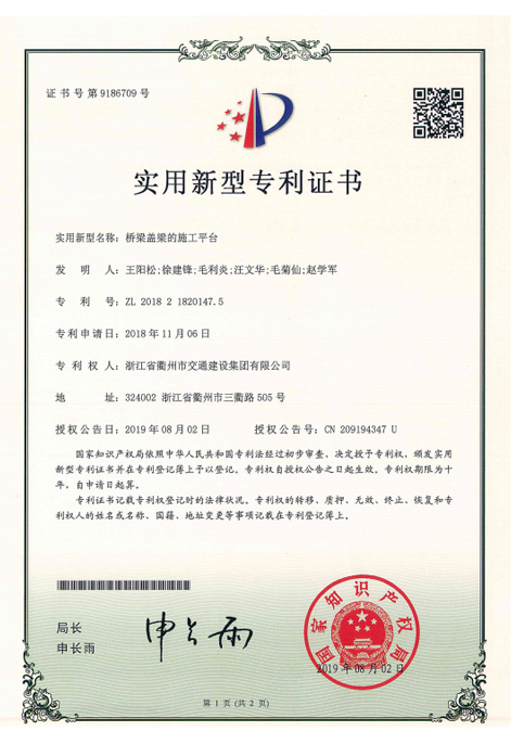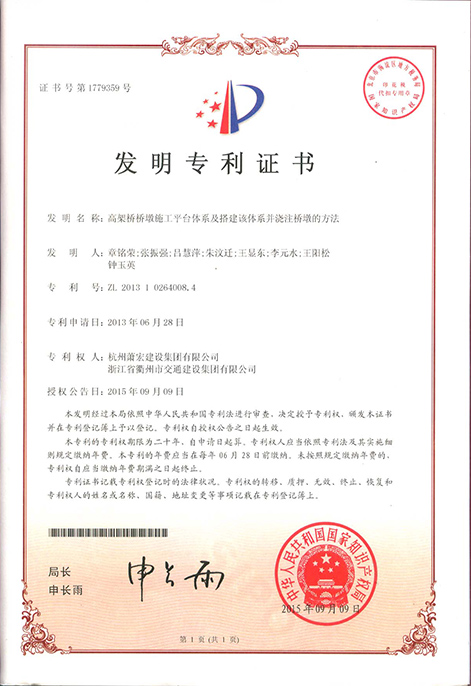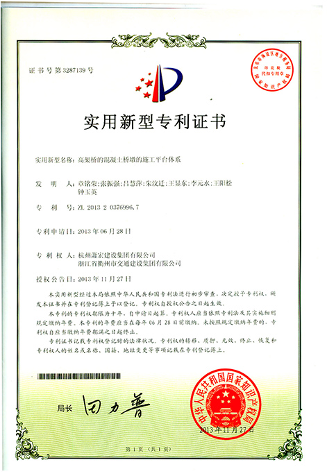2013年度高架橋墩施工平臺體系發(fā)明專利