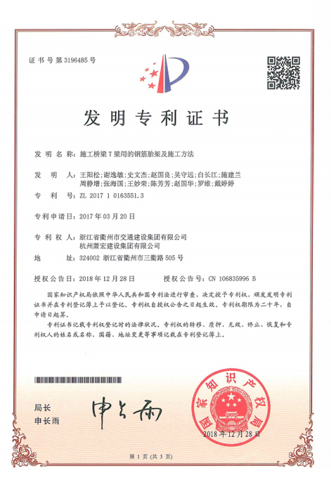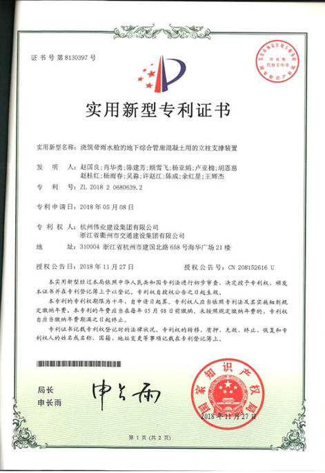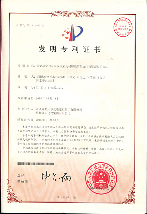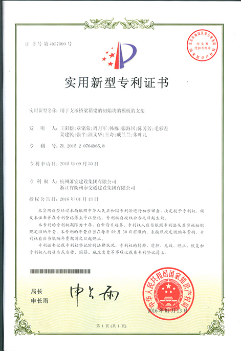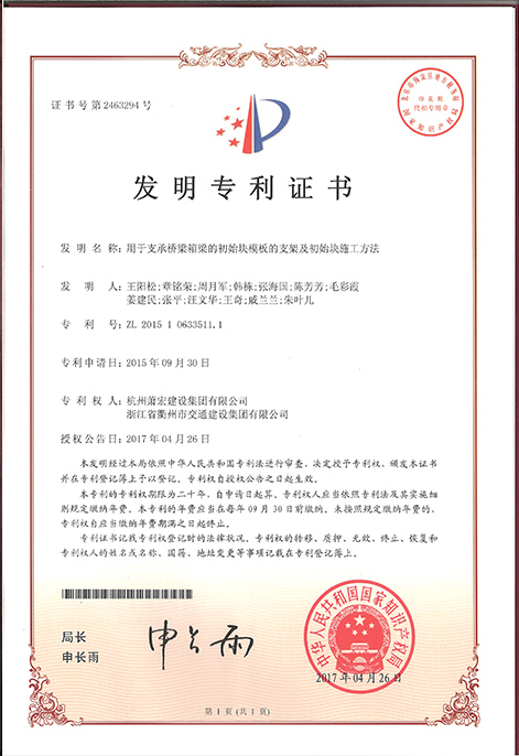 用于支承箱梁的初始塊模板的支架及初始塊施工方法發(fā)明專利證書